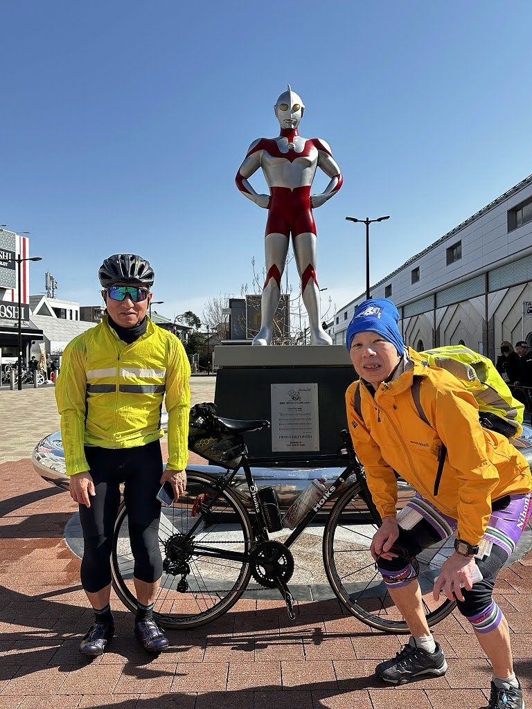 2026/03/01(日)に、新宿区霞ヶ丘町 神宮外苑絵画館前広場から、ゆかりの地各所を巡り鎌倉市・大船駅までの約90kmを走ってきました。参加は岩本氏(423)、佐藤(豊)氏(460)、坂東(65)。朝から昼前までは少々肌寒かったものの、その後は小春日和で半袖ジャージでも走れる好天気でした。